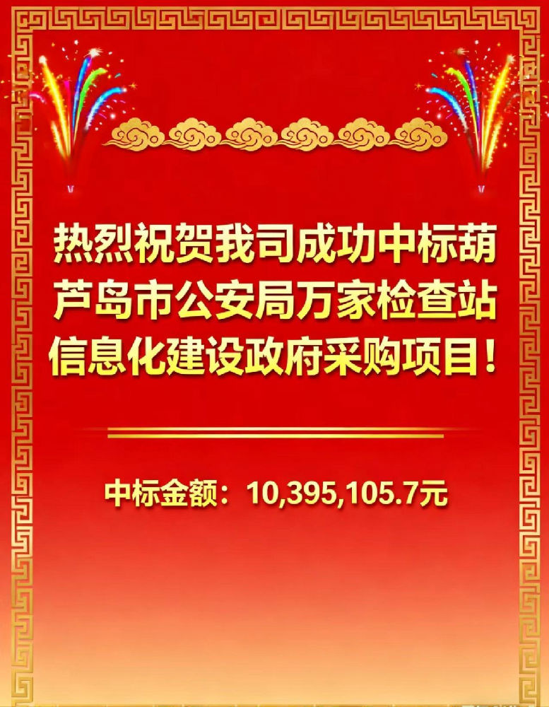 贺:葫芦岛市公安局万家检查站信息化建设政府采购项目顺利中标!